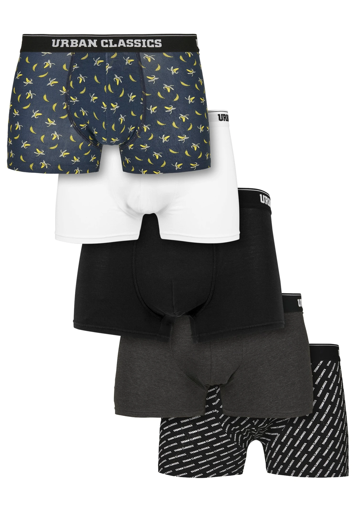 URBAN CLASSICS 5Pack – Onderbroeken – Ban.Aop+Brand.Aop+Chr+Blk+Wht