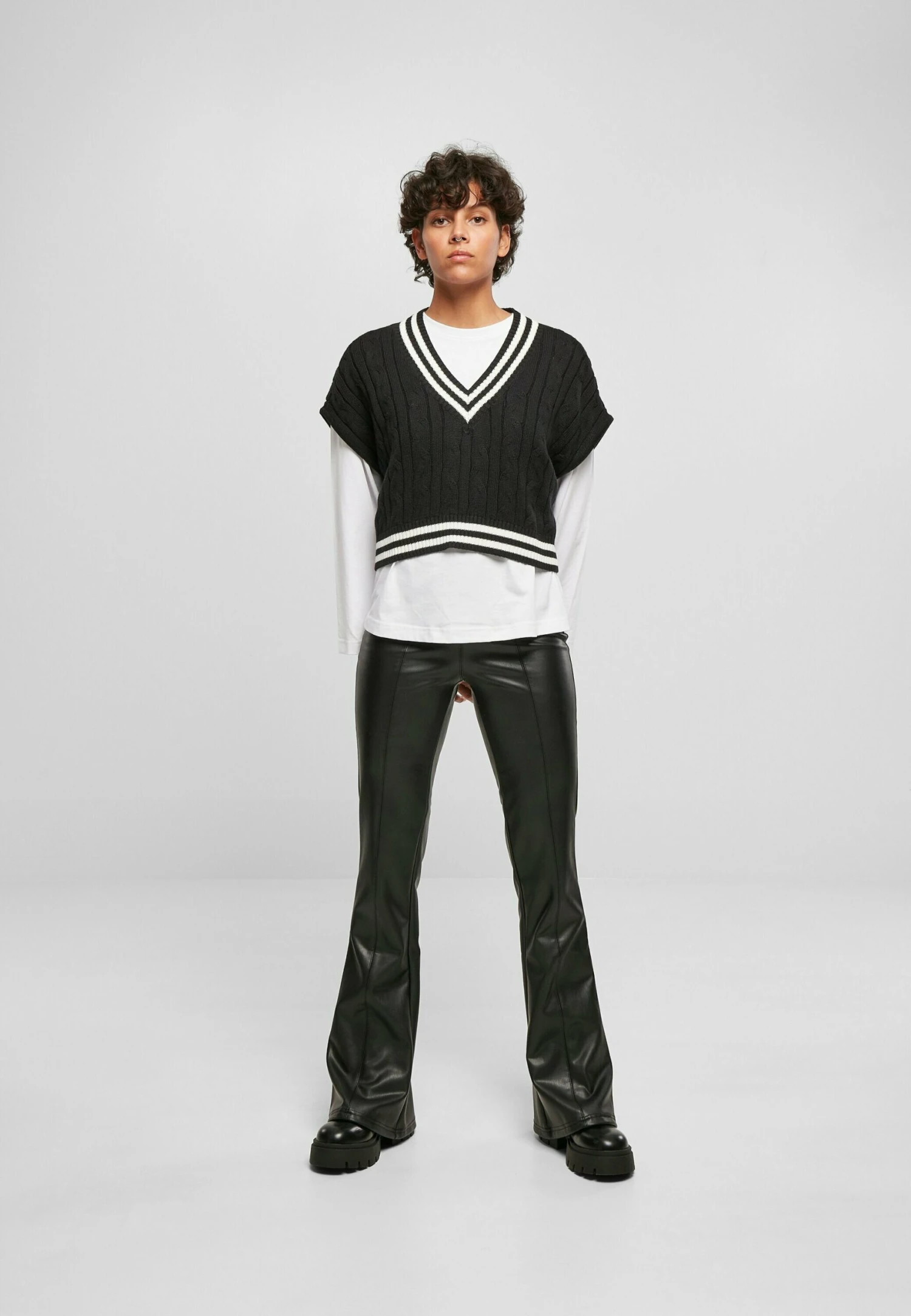 URBAN CLASSICS Cropped College Slipover – T-Shirt Print – Black